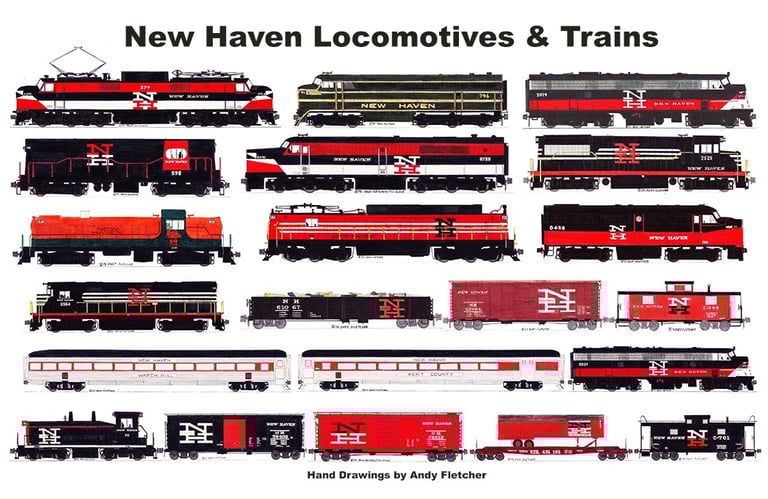 Andy Fletcher is a well known railroad artist, designer, and advocate for railroads. Over the past 30 years, he has hand-drawn over 4,000 locomotives, cabooses, and railcars, capturing the essence of American railroading from steam to modern diesel and electric trains. He is the designer of the Burlington Northern SD70 Executive MACs, the Norfolk Southern 30th Anniversary Heritage engines, the MTA Metro-North 40th Anniversary Heritage P32 locomotives, and other diesel locomotives. His drawings include freight and passenger trains available in a large variety of products for railroads, museums, tourist railroads and railfan's.