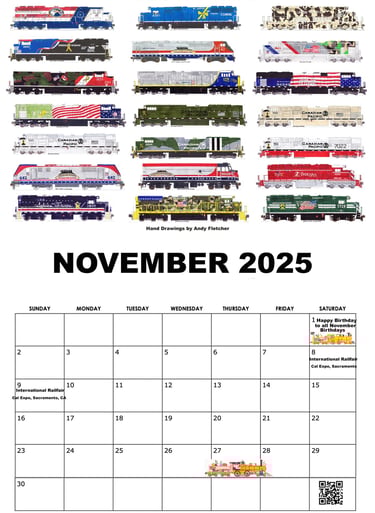 Andy Fletcher is a well known railroad artist, designer, and advocate for railroads. Over the past 30 years, he has hand-drawn over 4,000 locomotives, cabooses, and railcars, capturing the essence of American railroading from steam to modern diesel and electric trains. He is the designer of the Burlington Northern SD70 Executive MACs, the Norfolk Southern 30th Anniversary Heritage engines, the MTA Metro-North 40th Anniversary Heritage P32 locomotives, and other diesel locomotives. His drawings include freight and passenger trains available in a large variety of products for railroads, museums, tourist railroads and railfan's.