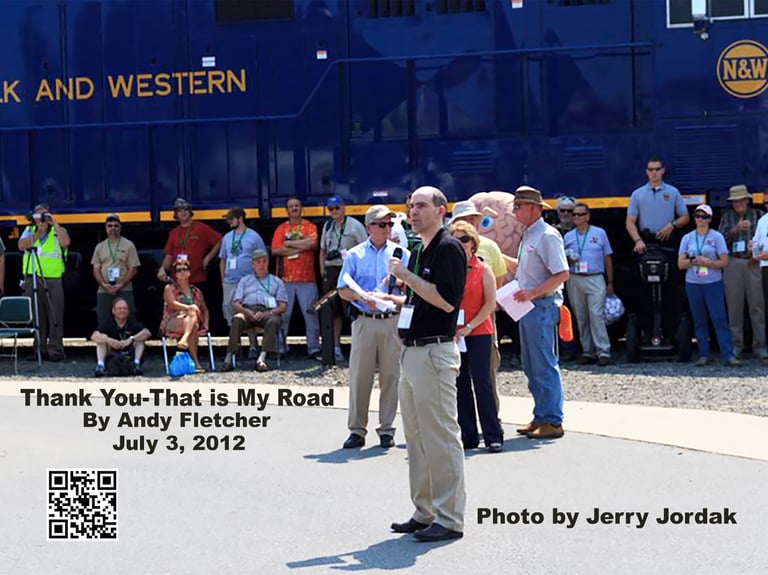 In January of 2011 he was contacted by the C&O Historical Society asking if he could make a poster for an event they were doing at the Virginia Museum of Transportation with their C&O #614 and the N&W 611 & the N&W #1218 for a February "Train Lovers Day". He contacted the VMT who said they would love for him to attend the event. Once he was at the event the museums offered him a "artist in residence". He decided to take it and move to Roanoke, VA which he knew had been the Headquarters of the N&W and the shops that build the N&W #611 and other steam engines. Living in Virginia he traveled across the state to visit Norfolk Southern towns and gave talks about the importance for trains to deliver the freight we all need everyday at service organizations like the Rotary and Kiwanis.