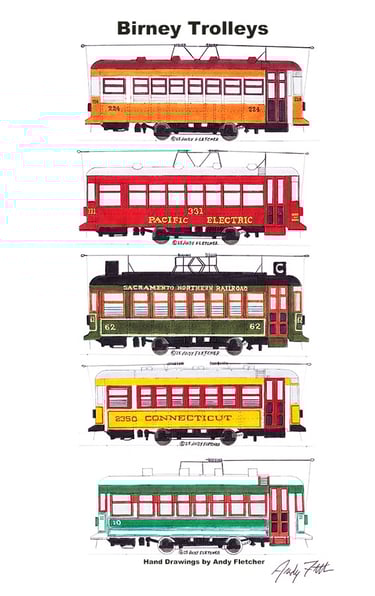 Andy is drawing more trolleys, streetcars and cable cars available as 11"x17" posters, magnets & stickers