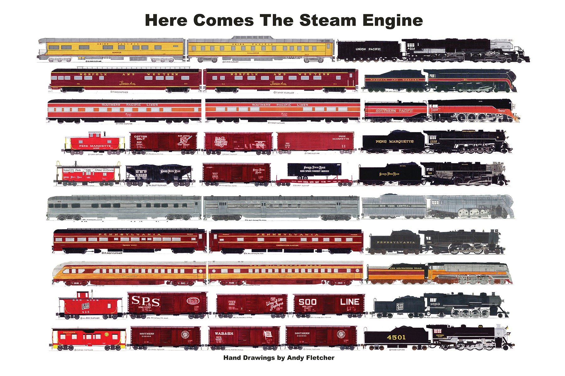 Contact me for inquiries about my hand-drawn railroad art, products, or custom designs. I'm here to help you celebrate railroading history.