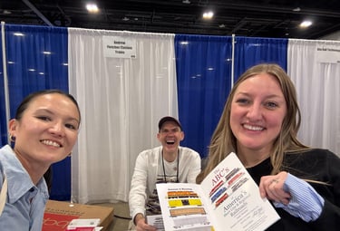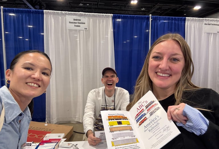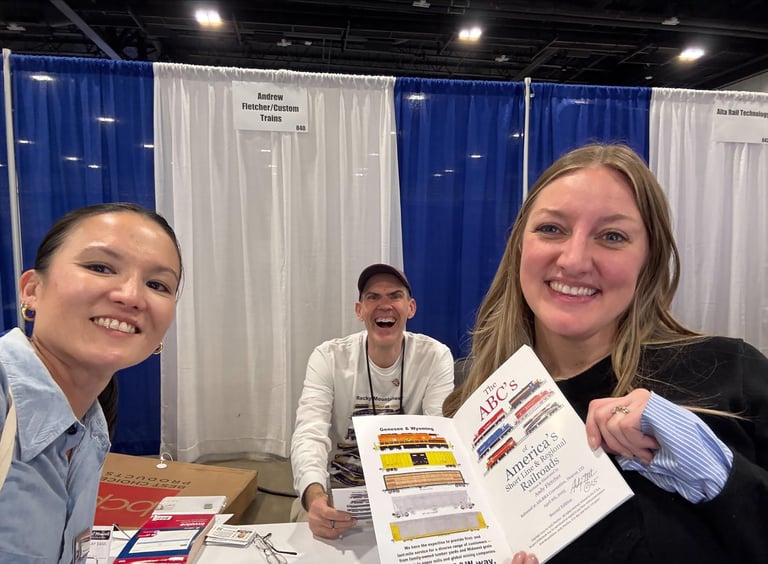 Photo of Andy giving out copies of his book "The ABC's of America's Short Line and Regional Railroads" to attendees at the ASLRRA Conference in Denver 2025