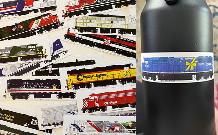 Put your favorite locomotive sticker on your water bottle!