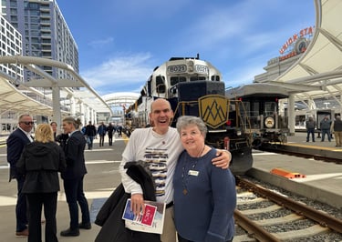 Andy and Kathy Keeney after riding the Rocky Mountaineer in Denver April 6, 2025