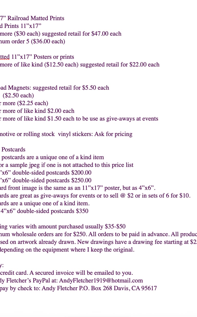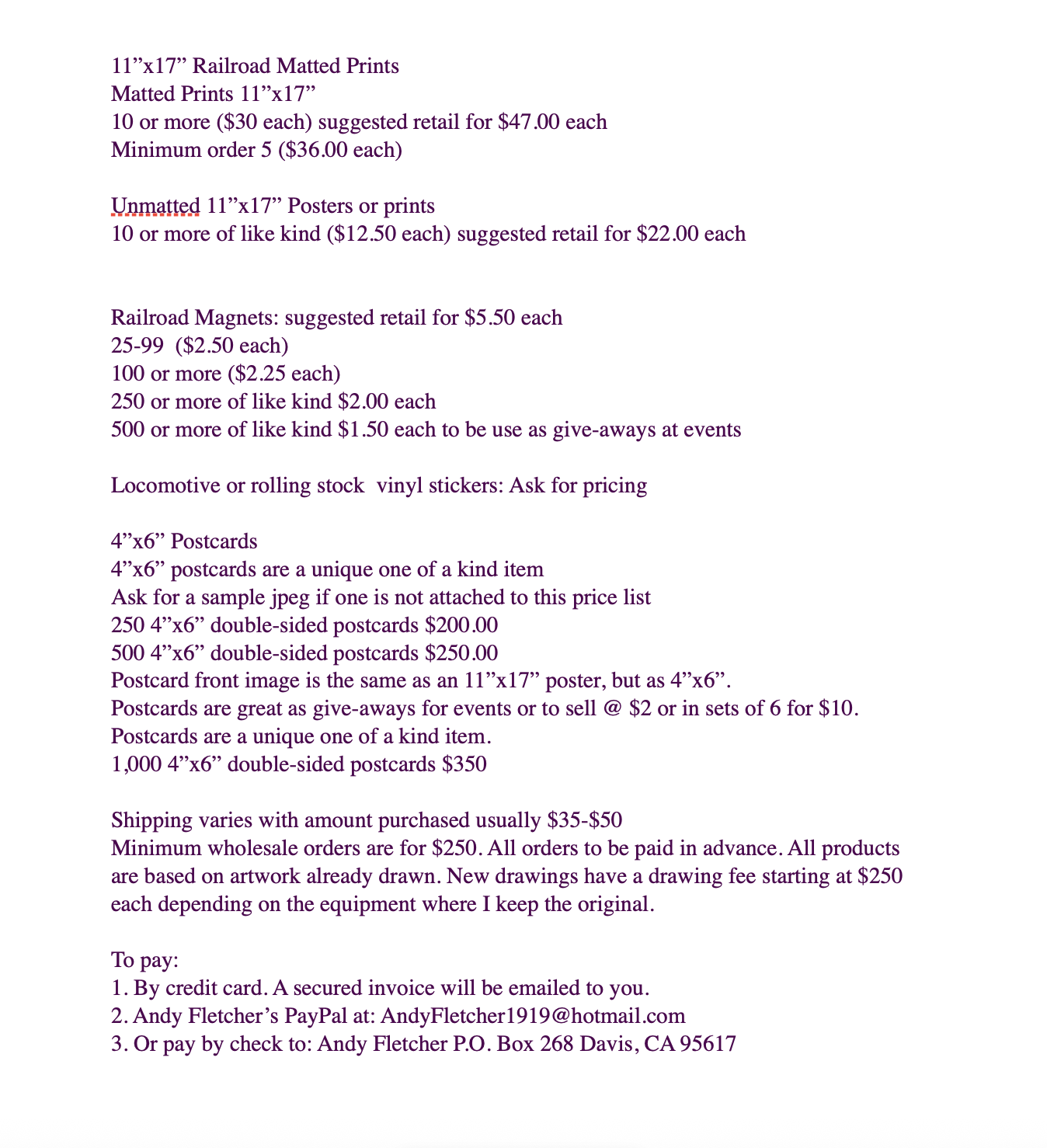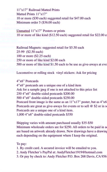 Contact me for inquiries about my hand-drawn railroad art, products, or custom designs. I'm here to help you celebrate railroading history.